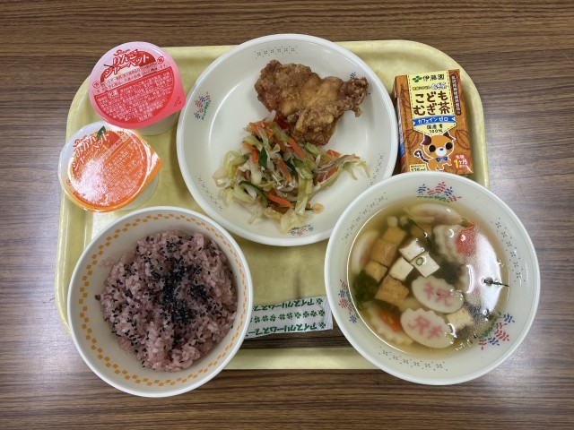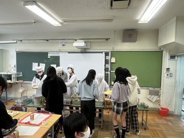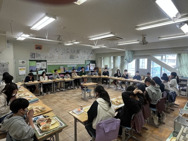 今日で今年度の給食が最後でした。6年生にとっては町一小の給食を食べる最後の日となりました。今日のデザートはシャーベットの味をみかんとりんごのどちらかを選べるセレクトデザートでした。あるクラスでは机を一つの円にして、みんなの顔を見ながら楽しい時間を過ごしていました。
