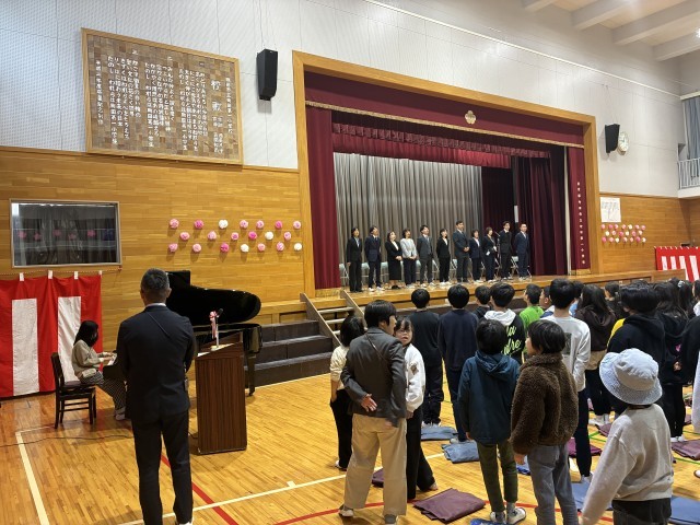 今日の一校時は離任式でした。先生方から想いのこもった挨拶を聞くことが出来ました。春はお別れ、そして出会いの季節。本校から離れる先生方、主事さん方、新しい場所でまた「わくわく」しながら働いていただきたいと思います!