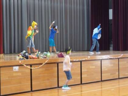 おにごっこと、定期的に舞台上でパレードが行われていました。