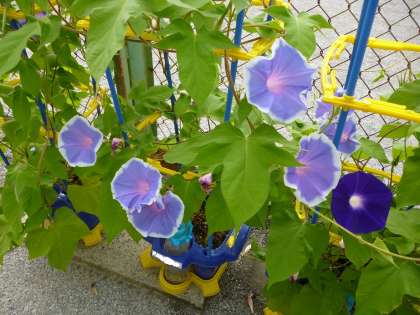 1年生が大切に育てているあさがおが綺麗に咲いています。