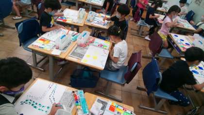 2学期が始まり、1年生は初めての絵の具を使いました。