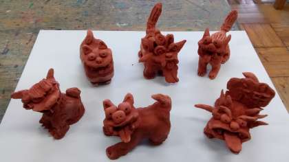 5年生の図工の授業で、それぞれの願いを込めたシーサーを作りました。