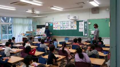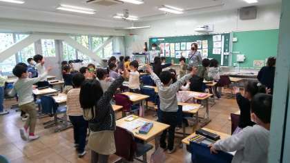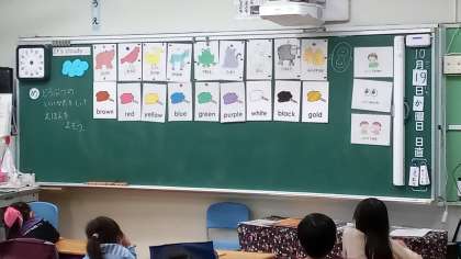 1年生の英語の授業です。色と動物の学習でした。何色の動物がいたかな?