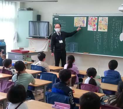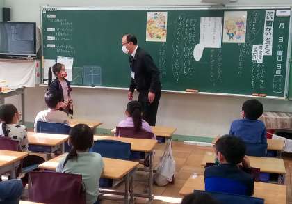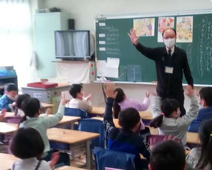 12月1日に校長先生による道徳の「はなばあちゃんが わらった」の授業が1年3組でありました。