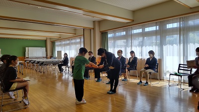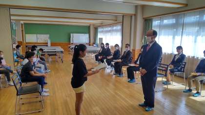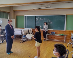 今日は昨年度までお世話になった先生方の離任式がありました。懐かしい先生と会うことができ、みな感激でした。代表の児童が、本校から他校に転任された方や、ご退職された方に、お手紙を読み、皆で書いたお手紙を渡しました。