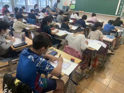朝の時間の町一タイムは、国語の学習をします。基本的に漢字の勉強の時間、もちろん一年生はひらがなの学習となります。漢字の学習は、毎日の積み重ねが大切な学習の代表的なものといえます。自分は漢字にまつわる話しをするのが大好きなので、漢字への興味を喚起していきたいと考えています。