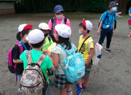 3年生がひなた村に遠足で来ました。天気にも恵まれ、学校から歩いて約50分、元気に楽しんでいます。スタンプラリーの作戦会議も真剣です。交通に気をつけて安全に帰校します。