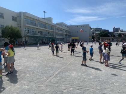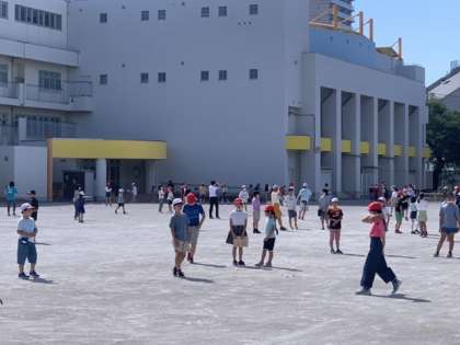今朝は3年生と5年生が異学年集会を行いました。朝から気温が高くなりましたが、子どもたちは元気に遊んでいました。WBGTの数値が高くなったら、外遊びは禁止となります。今日は休み時間は外遊びが難しいかもしれません。熱中症に気をつけながら、過ごしたいと考えます。