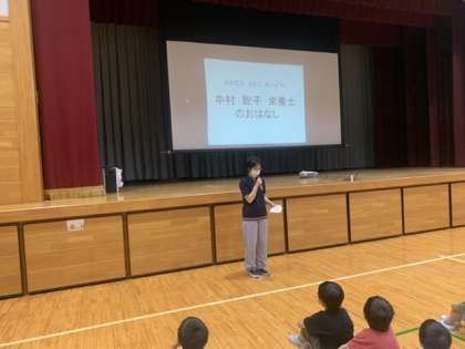 今日は全校朝会がありました。給食チャンピオンの表彰式。栄養士さんから、お話をしてもらいました。めあすばこ、スッキリキッチリチャンピオンの話しもしました。今日は朝から雨が降り、先週のような暑さは感じません。素敵な一週間にしたいものです!