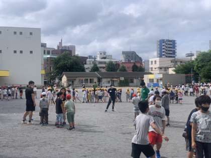 台風がそれた関係で、朝ながなわ集会が行えました。先週のような暑さもなく、運動に適した天気です。今日は奇数学年、1.3.5年生が行いました。暑い時期ではありますが、運動を行っても大丈夫な時間のみを活用して練習したいと思います。