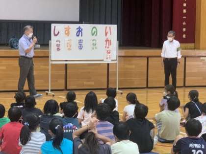今日は町田警察の方にご来校いただき、セーフティ教室を行いました。1年生と4年生が対象です。1年生は「いかのおすし」、連れ去りに対しての対処法の勉強。4年生は、スマートフォンのトラブルなどの勉強をしました。夏休み前に、よい学習の機会となりました。