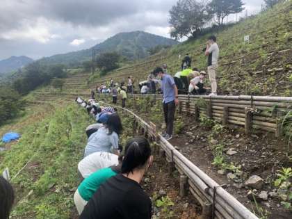 足尾銅山の近くで、植樹をしました。クヌギの苗木を植えたのです。山が生き返ってきているのが、よくわかります。みんなが、植えた苗木も15年ぐらいで、しっかりと森の一部になるはずです。