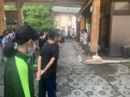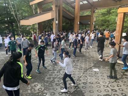 おはようございます。朝の集いの様子です。昨夜発熱した子がいたのですが、今朝の段階で熱が下がりました!全員でハイキングに出かけます。保護者の皆様ご安心ください。天気も昨夜とうってかわり、青空です。楽しい一日にしたいと思います!