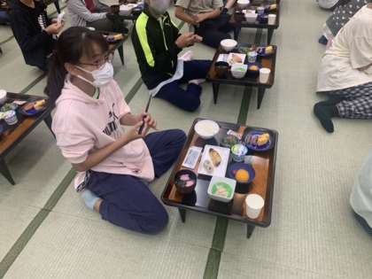 朝ご飯の風景です。ハイキングに向けて、エネルギーチャージです。