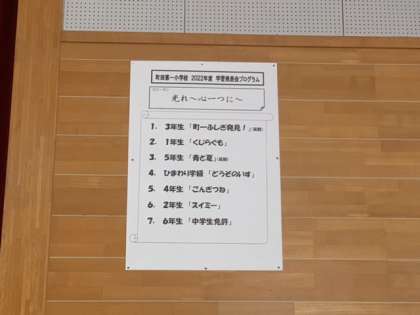 写真は明日の開幕を待つ体育館の様子です。いよいよ明日から学習発表会。まずは児童鑑賞日です。コロナで3、5年が延期になってしまったのは大変残念でしたが、まずはそれ以外の学年、しっかりと表現して欲しいものです。