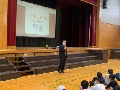 今朝は朝会にて、11月の振り返りと12月の取り組みについて話しをしました。そしてその前に、残念ながら悪戯についての指導をしたのです。ここのところ数件、トイレ内での悪戯がありました。見えないところで行っている悪質なものです。学習発表会があり、学校全体が落ち着かなかったせいかもしれません。もうすぐ12月、落ち着いた学校生活を心がけさせたいと思います。