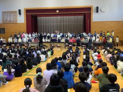 今朝は、5年生が明日連合音楽会に参加するのでその演奏を、他学年の子どもたちにお披露目しました。合唱は「大切なもの」。合奏は「青と夏」。合奏の方は学習発表会の内容ともリンクしていて、想いのつまった演奏となりました。明日、他の学校の子どもたちの前で、また素晴らしい演奏をして欲しいと願います!