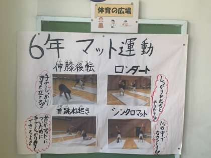 2学期最後の一週間となりました。爽やかな天気のスタートです。寒いですが、休み時間 子どもたちは元気いっぱいに遊んでいました。さて、体育の広場の3回目、高学年です。5年生のアルティメットは聞き慣れない競技ですよね。フリスビーのようなものを使います。こういった掲示で、子どもたちに興味をもたせるようにしています。