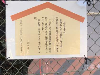 校庭の桜の樹、春には素晴らしい花を咲かせます。しかし、大きくなりすぎ重心が校庭側に片寄っていたのはご存知だと思います。安全面を優先し、今回伐採することにしました。しっかりと、桜の若木もその後に植えます。新しい校舎と合わせ、校庭が大きく変わります。