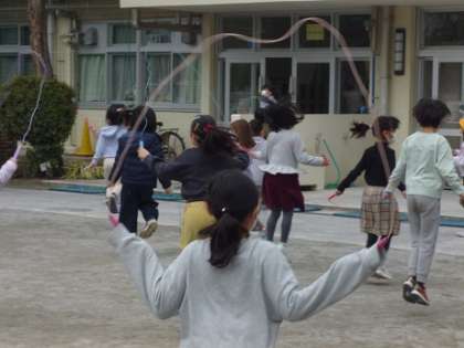 「今日は100回とべたよ!」「あやとびができるようになったよ!」と元気で楽しい声が校庭にこだましています。
