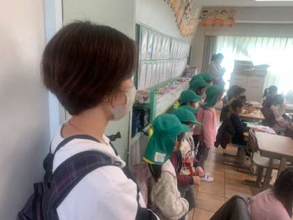 森野三丁目保育園の園児が、一年生の授業の様子を見学に来ました。4月からに向けての「心の準備」です。とても静かに、授業を見学していました。小学生の姿は、園児にどううつったでしょうか?今日は、学校全体でインフルにもコロナにも罹患している子がゼロとなりました。みんな元気な3月になりそうで嬉しいです!