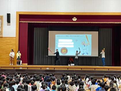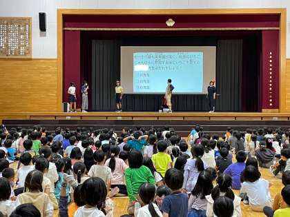 本校は学級数が多いため、先生も多いです。今日の集会は、そんな先生方についてのクイズ集会でした。先生の好きなものや、特技などがわかりました。ある先生の特技には、子どもたちもびっくり。楽しい集会でした。集会委員会のみなさん、どうもありがとう。