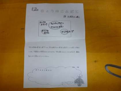 今日の献立は、セレクトドリンクやクリスマスチキンがあって、いつも以上に嬉しい給食でした。