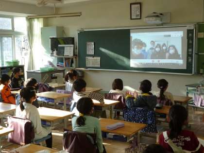 教室で見ていた子どもたちも静かに話を聞いていて、「給食」への関心の深さを知ることができました。