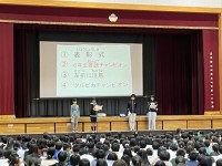 今日の児童集会では、集会委員が指示した通りに行動する「命令ゲーム」を行いました。「笑ってください。」、「手を挙げてください。」、「ジャンプしてください。」など、色々な指示が出て、みんな盛り上がっていました。集会の終わりに、来週行われる学習発表会のスローガンの紹介がありました。