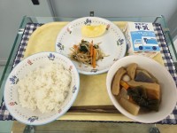 献立:みそ煮込みうどん、ごま和え、お月見団子、牛乳です。