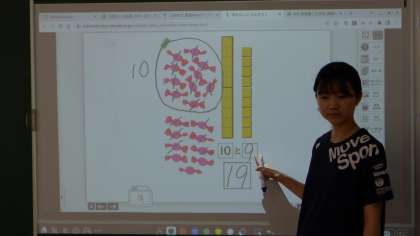 10より大きい数の学習を行っていて、みんなで数を数えていました。