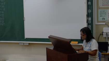 教室の近くに行くと1年生のかわいい歌声が聞こえてきて、思わず教室に入って聞いてしまいました。