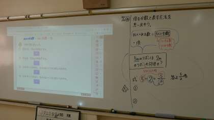 このグループは何倍かを分数を使って考えていました。