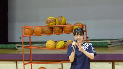 体育館いっぱいに広がってボールを使った運動を行っていました。