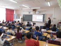 各学級の代表者に修了証を渡して、最後のお話をしました。その後、1年生が1年間のまとめを話して、校歌を歌って終わりました。
