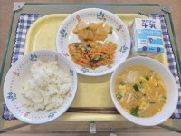 献立:ラーほー、手まりしゅうまい、ツナじゃがごま和え、牛乳です。