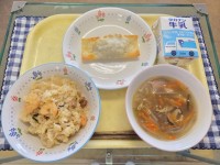 献立:中華ごはん、棒ぎょうざ、春雨スープ、牛乳です。