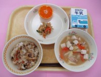 ・たきこみごはん・きりぼしサラダ・どさんこ汁・みかん・牛乳