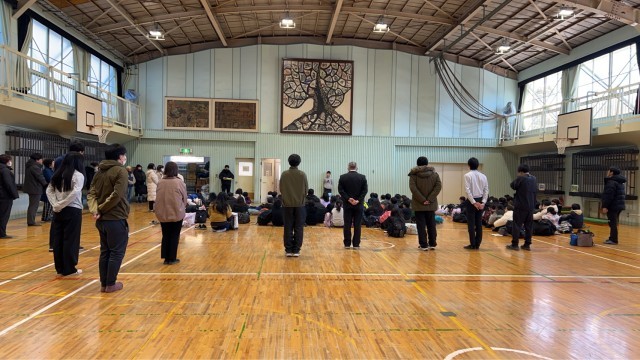 昨日の降雪の影響で、体育館での出発式でした。