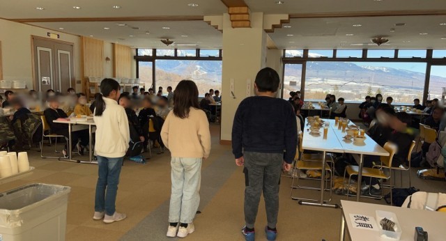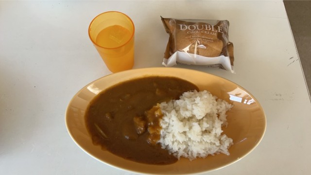 レストランに移動後、席の上にあるウエアを確認し、いただきますをしました。