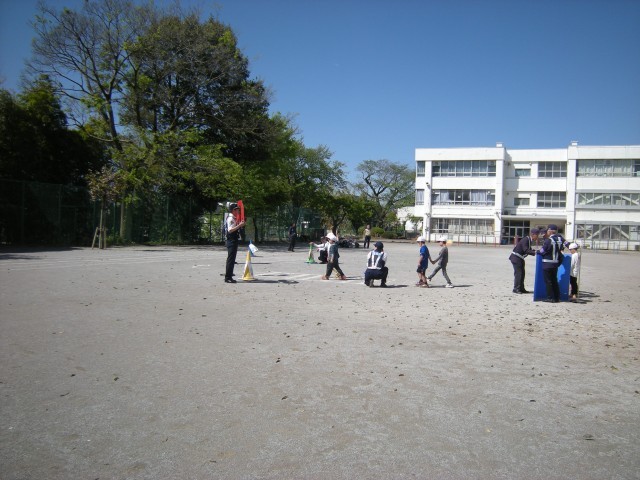 実際に校庭で渡り方の練習を行いました。