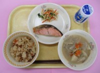 献立は「和風スパゲティ・照焼チキン・ぶどうゼリー・牛乳」でした。スパゲティはしょうゆやみりんで味付けをした和風スパゲティでした。具にはえのき、しめじ、エリンギときのこたっぷりスパゲティでした。