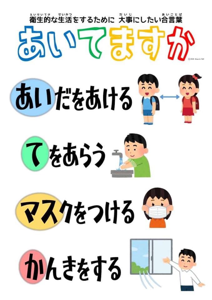 検温の他、間をあける、手洗い、マスク、換気、そして給食…
