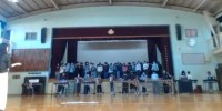 5年生は連合音楽会に向けて、学年全体で練習に励んでいます。体育館での響き方も確認...