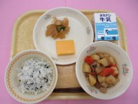 ・わかめごはん・たまご焼き・そくせきづけ・筑前煮・牛乳