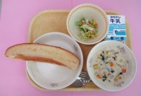 ・レモンシュガートースト・ブロッコリーサラダ・さつまいもシチュー・牛乳