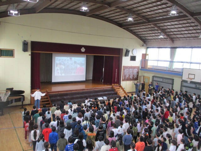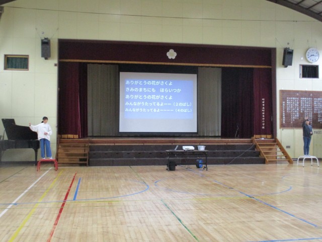 来週の「祝う会」に向けて、音楽朝会では「ありがとうの花」を合唱しました。当日は奇数学年と偶数学年に分かれて開催するので、5年生と6年生それぞれに指揮者がいます。指揮者に注目しながら、お互いの声をよく聞いて歌うことがめあてでした。大勢の前での指揮の前に、朝指揮者は練習をしていました。当日もよろしくお願いします。