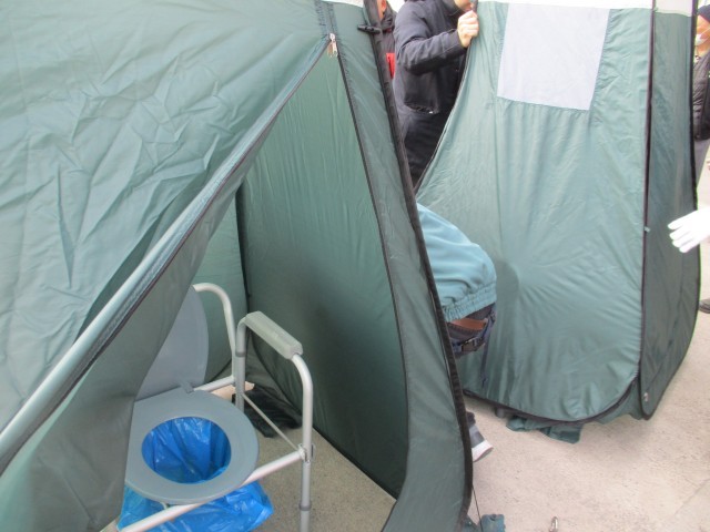 最後は、2つの班に分かれて、応急給水栓とマンホールトイレの資機材操作を行いました。応急給水栓を設置後に安全を確かめる試薬などの説明やトイレの組み立てや下水の仕組みなどを確認しました。万が一のために、改めて確認することが大切だと思いました。