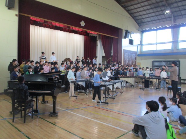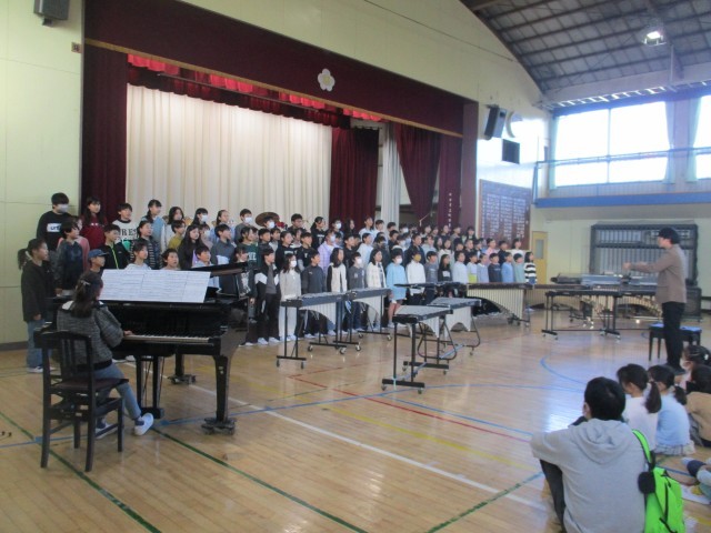 今回の音楽朝会は、5年生の発表でした。明日の連合音楽会直前です。合奏と合唱のそれぞれの練習で頑張ったところを紹介した後、全校に聴いてもらました。緊張もあったようですが、これまで練習してきたことを発揮しました。明日もこの調子で頑張ってきてくださいね。