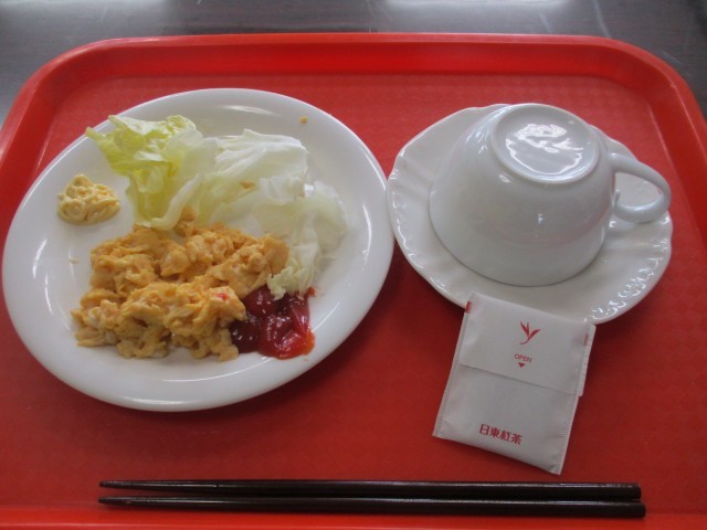 6年生が校長室に、試食を届けてくれました。手にはたくさんの調味料があります。「何にされますか?」とたずねられたので、レタスにマヨネーズをリクエスト。食べてびっくり。バターの香りがして、とても贅沢気分のスクランブルエッグでした。ごちそうさまでした!!